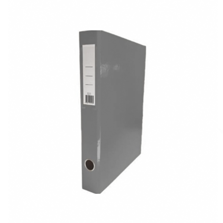 Pasta arquivo lombada estreita ideal para guardar todos os apontamentos escolares e documentos importantes, esta pasta é forrada a papel plastificado, contêm 2 Argolas e as suas medidas são 320x290x40mm - disponível em Cinza